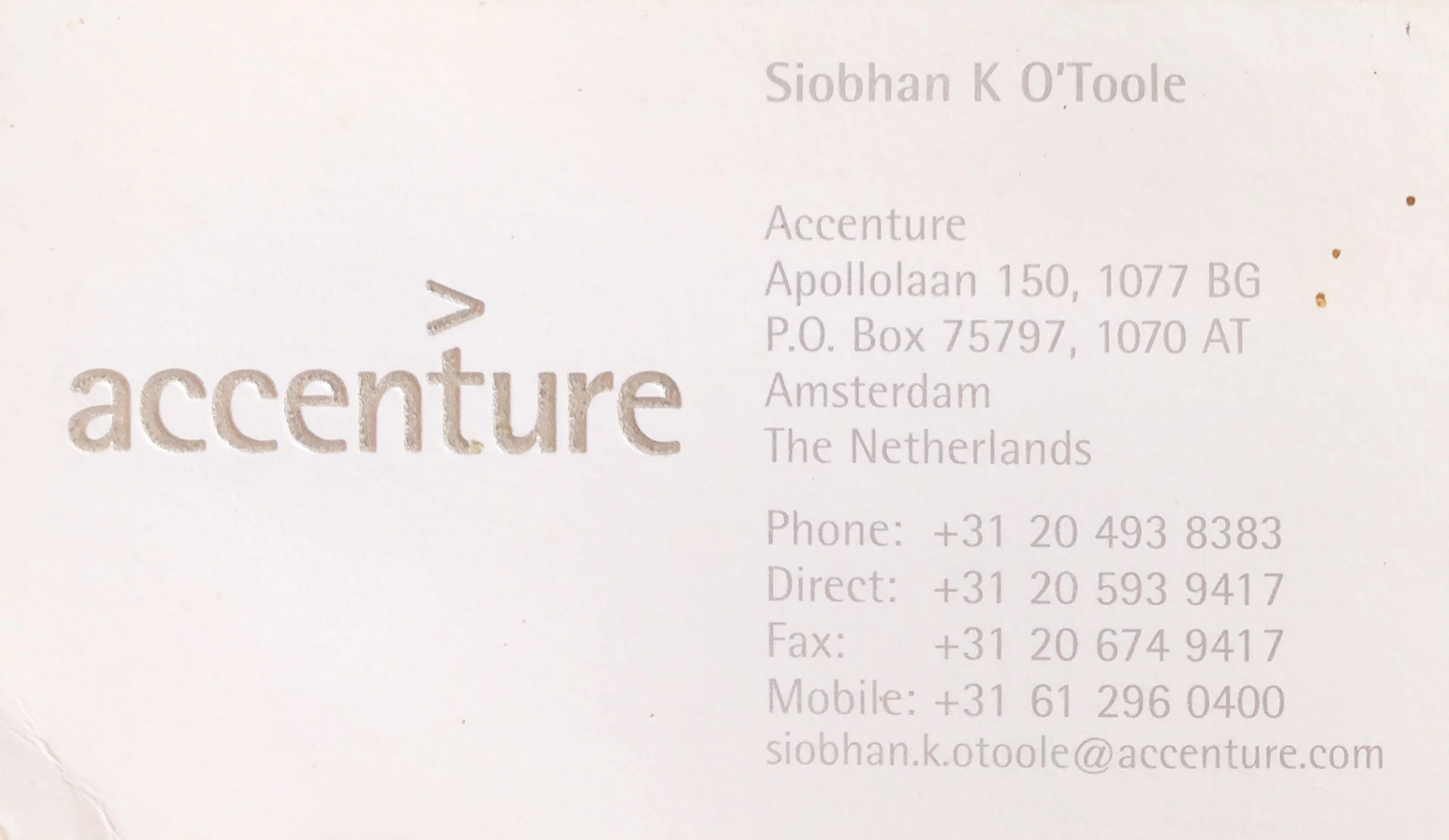 Siobhan moved to Accenture Netherlands in 2006. She joined the Management consulting practise in Customer Relationship Management.